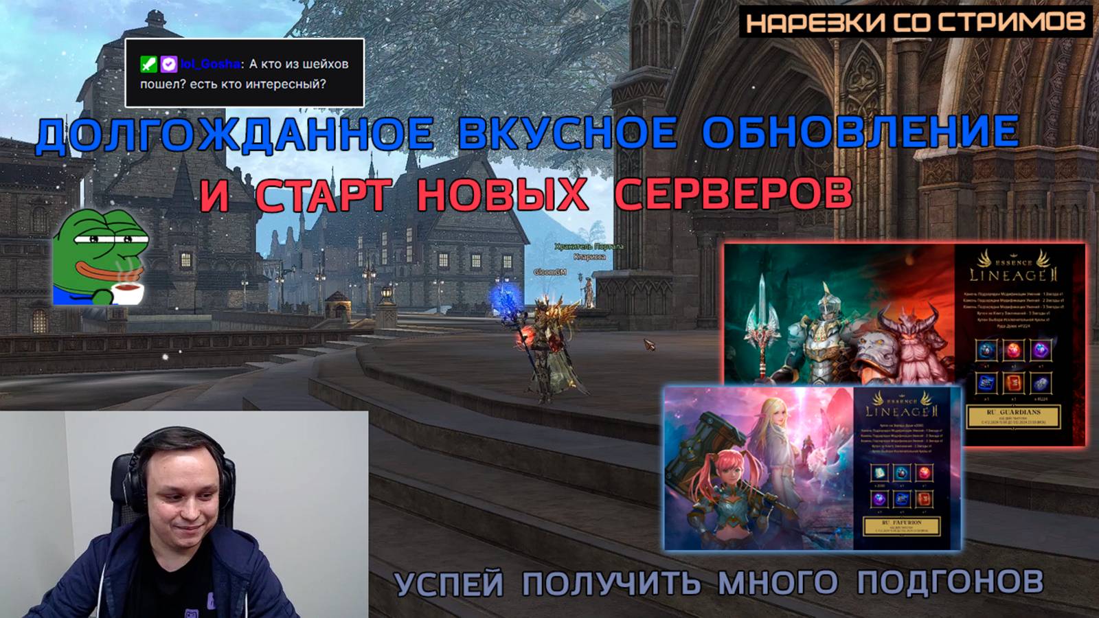 Начни играть в лучшую версию Lineage 2 для игры в 1 одно окно c минимальным донатом https://ru.4game.com/s2s/essence_l2fm ЗАЛЕТАЙ В ЧАТ РУОФФА https://t.me/chatruoffa Таймкоды и ссылки на стримеров 0:00 https://twitch.tv/Lineage2Russia twitch/Lineage2Russia 2:49 КУБ ПОМОЩИ ПАРТНЁРА И НАБОР ПРОЛОГА ЗА 0 РУБЛЕЙ 3:31 https://twitch.tv/pashavvp twitch/pashavvp 4:11 https://twitch.tv/Gorezones twitch/Gorezones 5:45 https://twitch.tv/ilevvvy twitch/ilevvvy 7:03 https://twitch.tv/CTAPUKTV twitch/CTAPUKTV 7:17 УЧАСТВУЙТЕ ИЛИ ПРОСТО ПОДДЕРЖИТЕ КАНАЛ ЛАЙКОМ 7:30 https://twitch.tv/EndorphinEw twitch/EndorphinEw 8:13 https://twitch.tv/pashavvp twitch/pashavvp 9:12 https://www.youtube.com/@ZaryaM youtube/ZaryaM 10:26 РОЗЫГРЫШ 2 ШТ 1000 L МОНЕТ И 2 ПРОМОКОДА КАЖДОМУ ПОБЕДИТЕЛЮ 🎉 Участвуй в розыгрышах 2 шт л1к +2 промокода на 1600 L монет каждому победителю 🏆 ПРЕДЛОЖИТЬ СВОЙ МОМЕНТ https://forms.gle/sXXs73aseMAHyjZD9 Подпишитесь на канал вконтакте https://vk.com/lineage2_fm #lineage2 #линейдж2 #lineage #mmorpg #игра #game