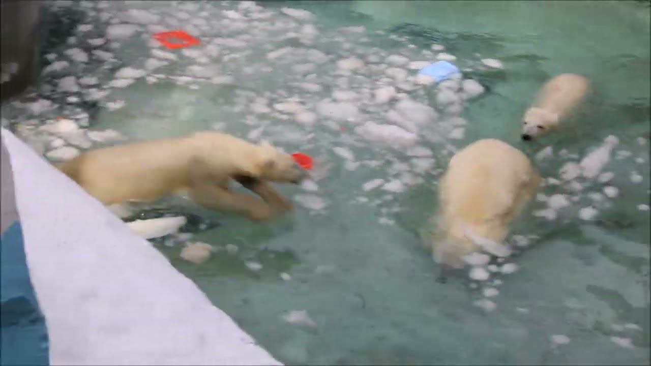 Герда родилась в Москве 20 ноября 2007 года. Её мама Симона, папа Врангель. В Новосибирск переехала 05.08.2008. В 2013 году у Герды и Кая родилась Шилка. В 2015 году она переехала в Японию. В 2015 году родился Ростик. 6 декабря 2018 года он переехал в Китай. В 2018 году родились Норди и Шайна. Данная пара молодых медведей находилась вне экспозиции зоопарка, поэтому посетители не могли их видеть. Передача молодых медведей в другой зоопарк не планируется, — ответили на запрос редакции в пресс-центре мэрии Новосибирска. Но Шайна 20 января 2024 года переехала в Ижевский зоопарк. Белые медведи одиночные животные. Как правило, миролюбивы по отношению друг к другу, но между самцами в брачный период случаются стычки. Взрослые самцы могут нападать на медвежат. Гон с марта по июнь. Продолжительность жизни — максимум 25—30 лет; в неволе рекорд долгожительства — 42 года. Вес очень крупных самцов в некоторых частях ареала 700 и даже 800 кг: есть данные о зверях весом до 1000 кг. Обычно вес меньше. Самки всегда не только меньше, но и значительно легче самцов. Так, самцы в восточной Гренландии в состоянии нормальной упитанности весят 400—450 кг, хорошо упитанные — до 500 кг, самки, даже очень сытые, здесь же редко весят больше 350—380 кг, т. е. их вес составляет около 75% веса самцов. Длина тела на 3-й день после рождения 28—32 см, средний вес — около 755 г (650—840 г). На 26-й день длина тела увеличивается незначительно — до 35—38 см, а вес возрастает до 1125—1275 г. В возрасте 60 дней самцы весят около 7 кг, самки — около 6 кг при длине тела у первых 58—60 см, у вторых 54—58 см. В возрасте 4 месяца медвежата достигают веса 22—23 кг, в 6-месячном возрасте при длине около 110 см — 40—43 кг, в 8-месячном — 58—62 кг. Длина тела в возрасте с 6 до 9 месяцев нарастает по 6—7 см в месяц. Во время зимнего сна рост почти прекращается. В зоопарке медведей кормят утром морской рыбой, хлеб с рыбьим жиром внутри, морковь, яблоки, морская капуста, яйцо дают сырое. Медвежат подкармливают молоком из соски. На ужин мясо (говядина, конина, куры или индейка). Летом и осенью арбузы, дыни, ранетки, кабачки, тыквы, огурцы. Когда показательное кормление летом бросают живую рыбу. Медвежата с медведицей находятся до 2-х лет. 16 декабря 2022 года Герда родила 2-х медвежат. И это две девочки! Имена дали 25 июня. Медвежат зовут Стрелка и Белка. Обзор вольеров белых медведей https://www.youtube.com/watch?v=mAt_b7JD0B4&list=PLGvf0V-rAHxkpGKJaWIZIUxRKgKiqV3xZ&index=17&t=0s