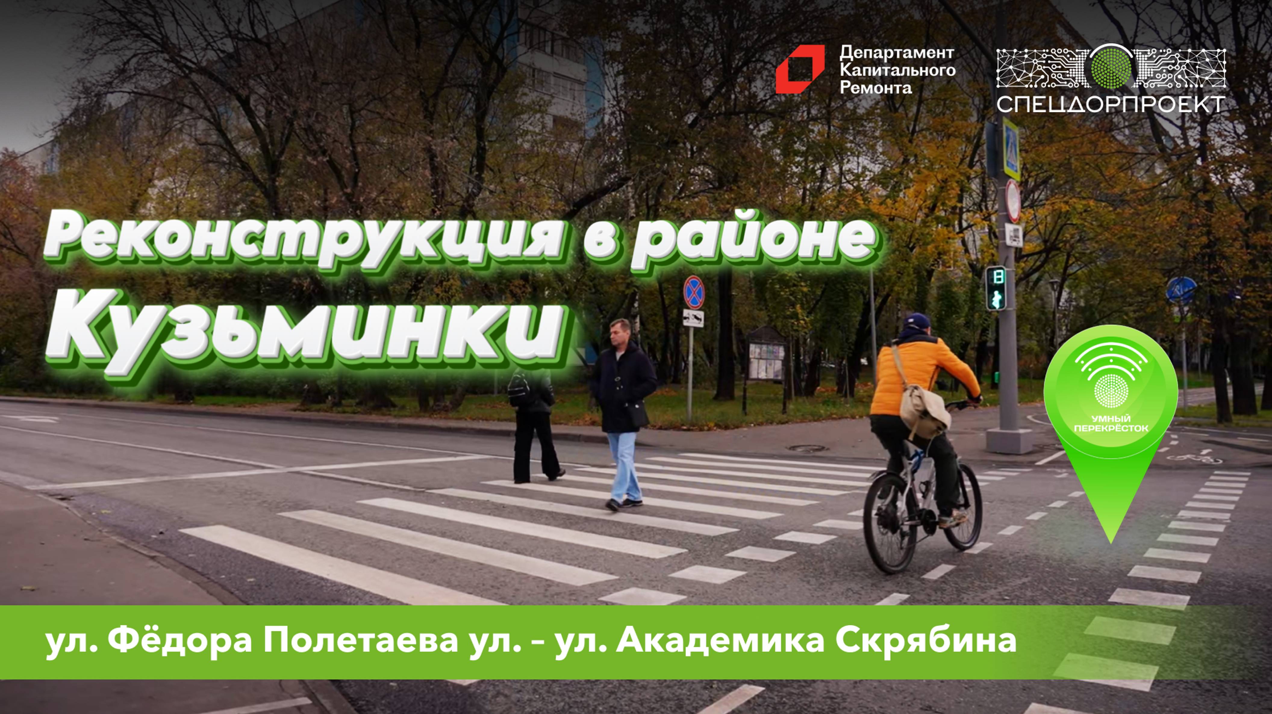 На пересечении ул.Академика Скрябина и ул.Фёдора Полетаева совместными усилиями «СпецДорПроекта» и Дирекция Департамента капитального ремонта Москвы проведены работы по реконструкции. 🚦 Теперь на этом участке «Умный перекрёсток»: установлены индуктивные петлевые детекторы (ИПД), кнопки вызова пешеходной фазы, а также добавлены пешеходные светильники, обустроены парковочные карманы и многое другое. Обратите внимание, здесь также появился велопереезд, который в скором времени будет оснащен велосипедными светофорами, что сделает перекрёсток еще более комфортным и безопасным. Подробнее об изменениях смотри в нашем ролике и подписывайся на канал!