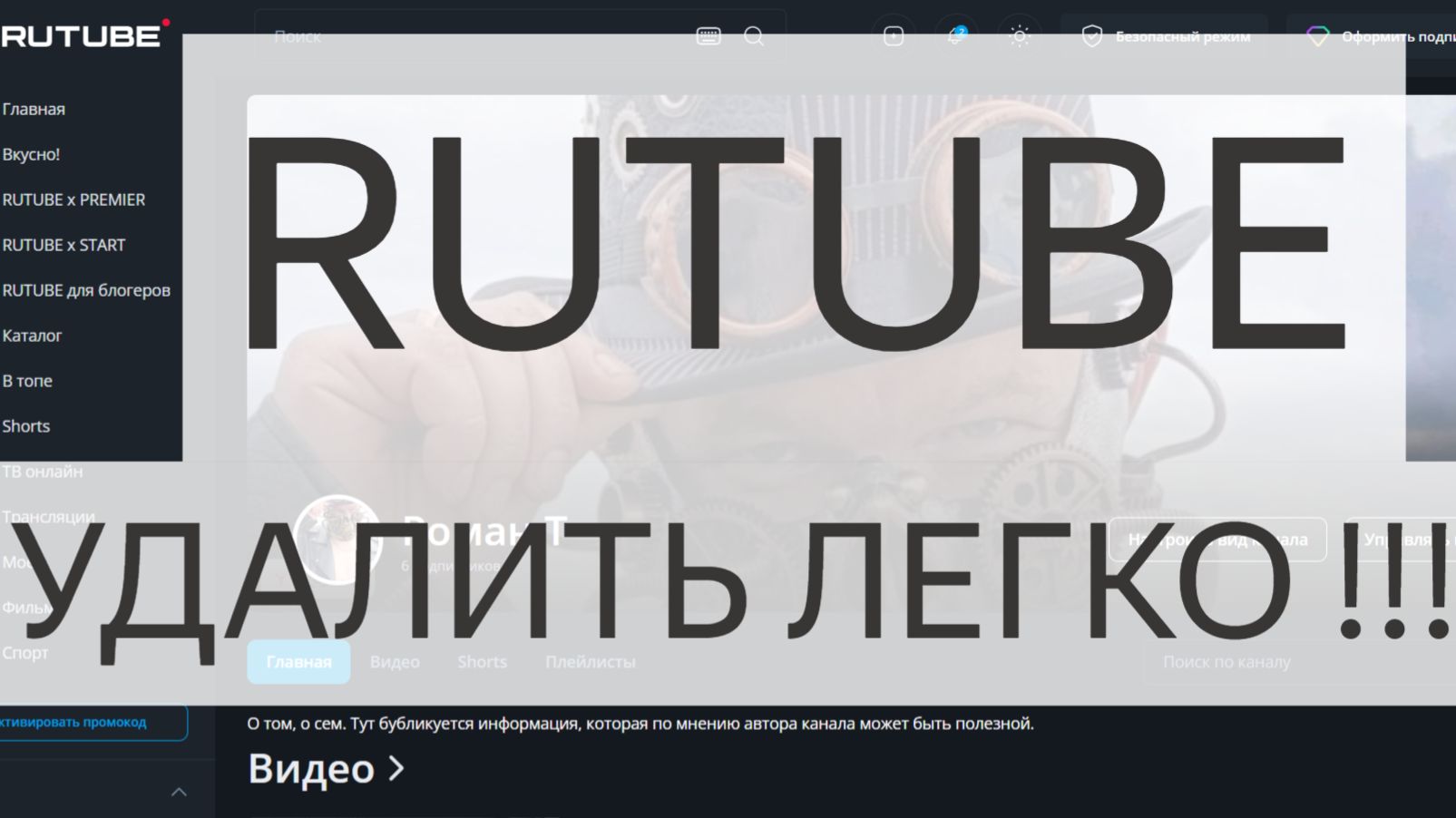 Как без заморочек удалить RUTUBE канал