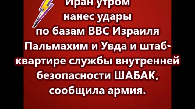 Иран утром нанес удары по базам ВВС Израиля Пальмахим и Увда и штаб-квартире службы внутренней безопасности ШАБАК