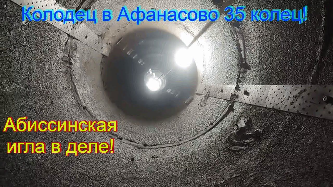 Колодец в Афанасово 35 колец, углубляем абиссинской скважиной Сквозь черный песок, плиту и глину до