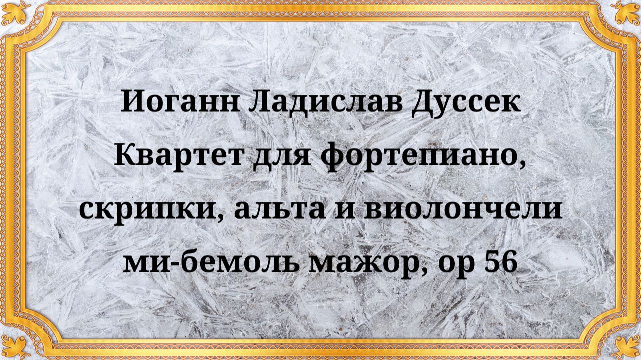 Иоганн Ладислав Дуссек Квартет для фортепиано, скрипки, альта и виолончели ми-бемоль мажор, op 56
