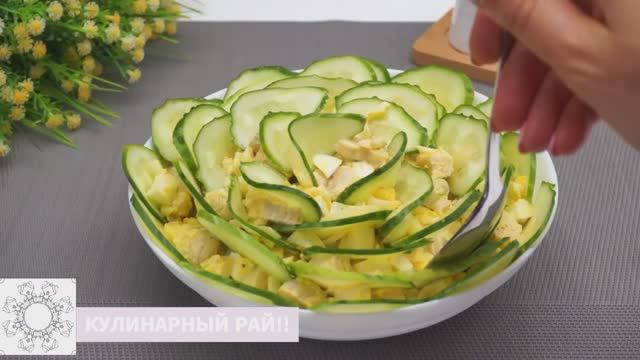 Всем привет!Вы на канале КУЛИНАРНЫЙ РАЙ!!Вкусный и легкий салат Роза из огурцов понравится всем любителям свежих и необычных сочетаний. В этом салате прекрасно гармонирует нежная курочка и маринованные грибы. А сыр и яйца придают салату сытность. Свежий огурчик, который выступает и в качестве украшения, добавляет сочности и яркости вкусу. А выложить украшение в виде Розы из огурцов получится у всех. Такой салат прекрасно подходит на любой праздничный стол. Особенно он украсит стол к 8 Марта или на день рождения. Обязательно украсьте такой Розой из огурцов свой праздник. Это просто и очень вкусно. ✅Ингредиенты: куриная грудка запеченная (вареная) - 300 г шампиньоны консервированные - 1 банка (200 г) яйца вареные - 3 шт. огурцы - 3 шт. сыр - 100 г лук - 1 шт. майонез - 2-3 ст.л. Маринад: кипяток - 1 ст. уксус яблочный или столовый 9% - 2 ст. л. сахар - 1 ч. л. соль - 0,5 ч. л. ✅Пошаговый рецепт приготовления: Сначала замаринуем лук. 1 луковицу нарезаем полукольцами. Нарезанный лук кладем в миску. К нему насыпаем 1 ч.л. сахара, 0,5 ч.л. соли. Все заливаем 1 ст. кипятка. И сюда же наливаем 2 ст. л. яблочного или столового 9% уксуса. Все перемешиваем и оставляем мариноваться лук на 15 минут.Пока маринуется лук подготовим остальные ингредиенты. Одну 200 г баночку маринованных шампиньонов нарезаем половинками. Если грибочки более крупные, то разрезаем их на 4 части. 3 вареных яйца режем кубиками.300 г запеченной куриной грудки нарезаем кубиками. 100 г сыра трем на крупной терке.В миску кладем нарезанные грибы, куриную грудку, яйца, сыр и маринованный лук. Все немного солим и перчим. Салат заправляем 2 ст.л. майонеза и перемешиваем. Готовый салат перекладываем в салатницу, в которой будем подавать его на стол.Три огурца среднего размера нарезаем тонкими пластинками.Пластинки огурцов вставляем по кругу в салат имитируя лепестки розы. Чтоб было удобней помогаем себе вилкой или ножом. Салат готов, можно подавать на стол.Салат получился вкусным и сытным. Готовится он очень просто и легко и не смотря на свою простоту на столе такой салат смотрится красиво и празднично. Готовьте вкусно,готовьте с удовольствием!! Спасибо что, смотрите👀 мои видео! ЛУЧШАЯ БЛАГОДАРНОСТЬ – подписка на канал 😍, оценка видео 👍👍👍, репост и комментарий! Буду рада любому донату💲 на корм моему котику Василию 🐱😇🌹 Вам мелочь, а нам приятно.🌹