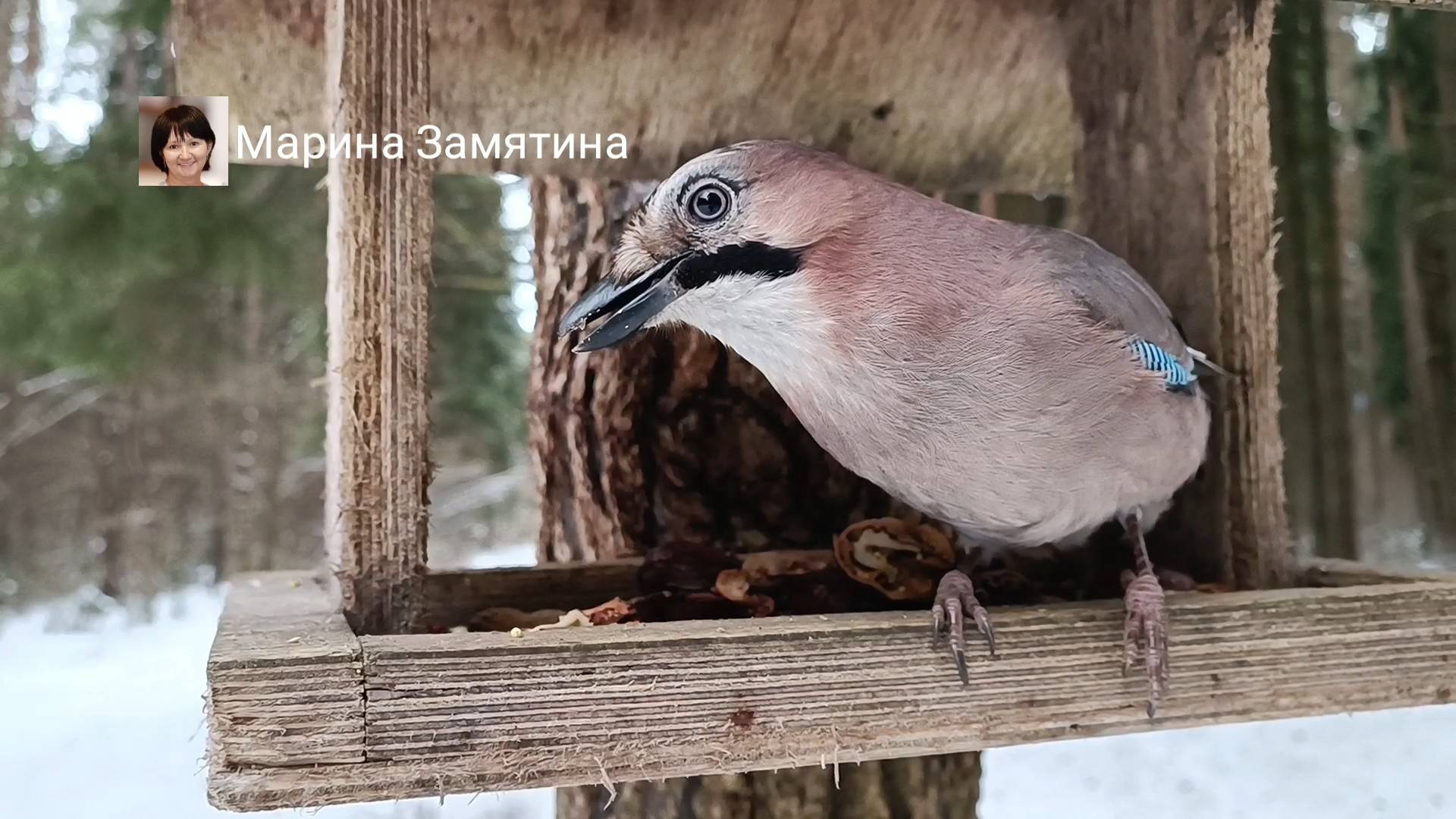Сойка чистит орешки.