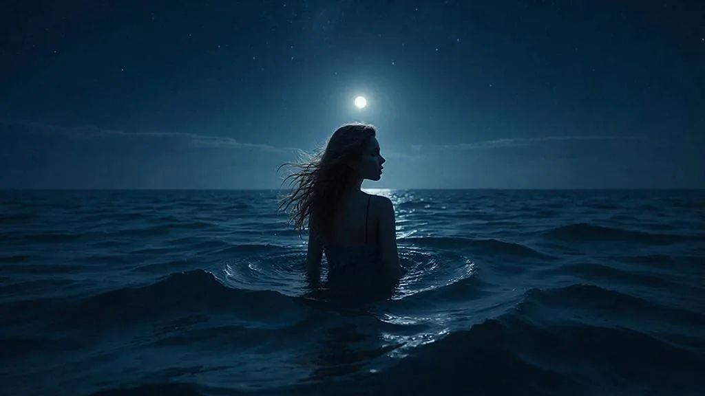 Молодая женщина, хороша собой, и в меня влюбилась, раз выманила на свидание, ночью, в море...