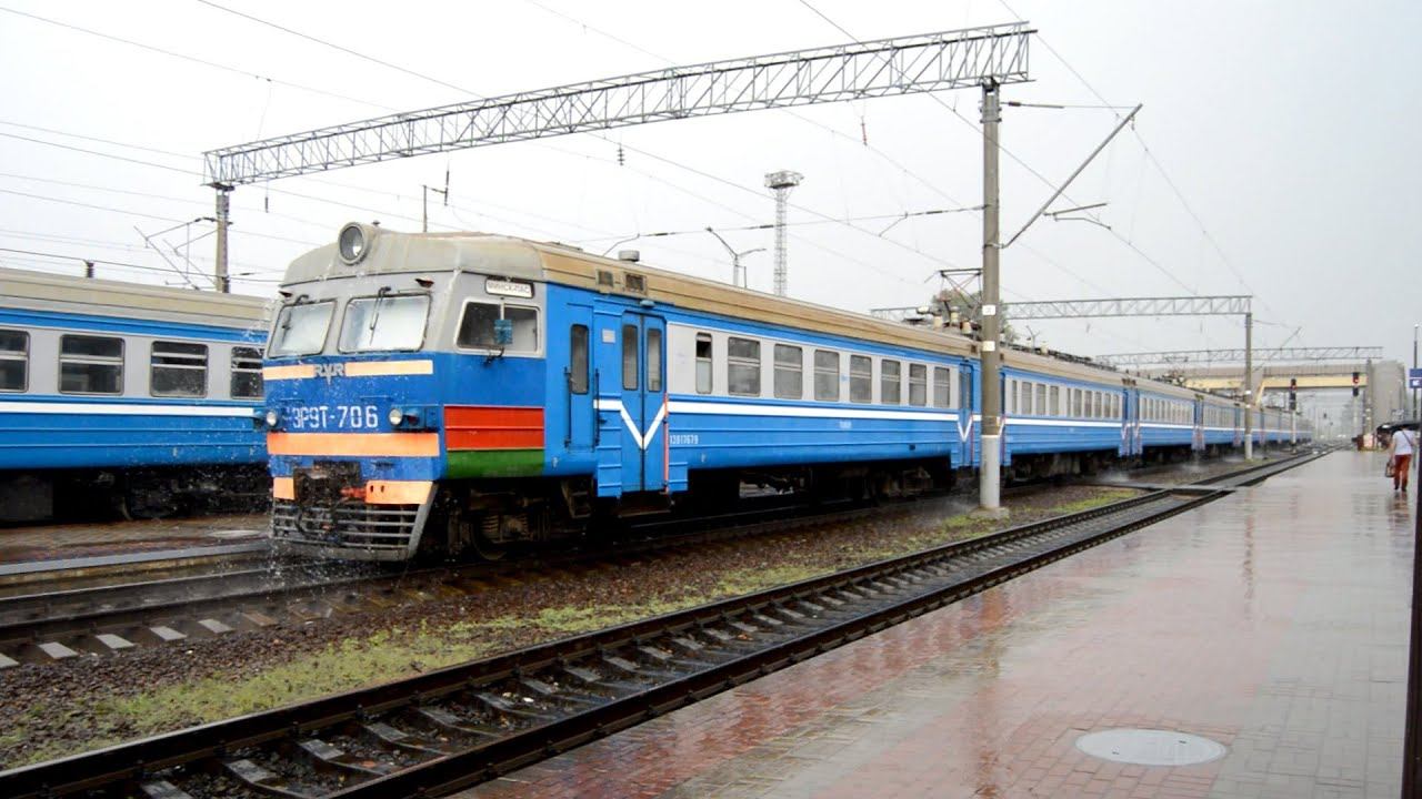 ЭР9Т-706 на станции Молодечно после тропического ливня