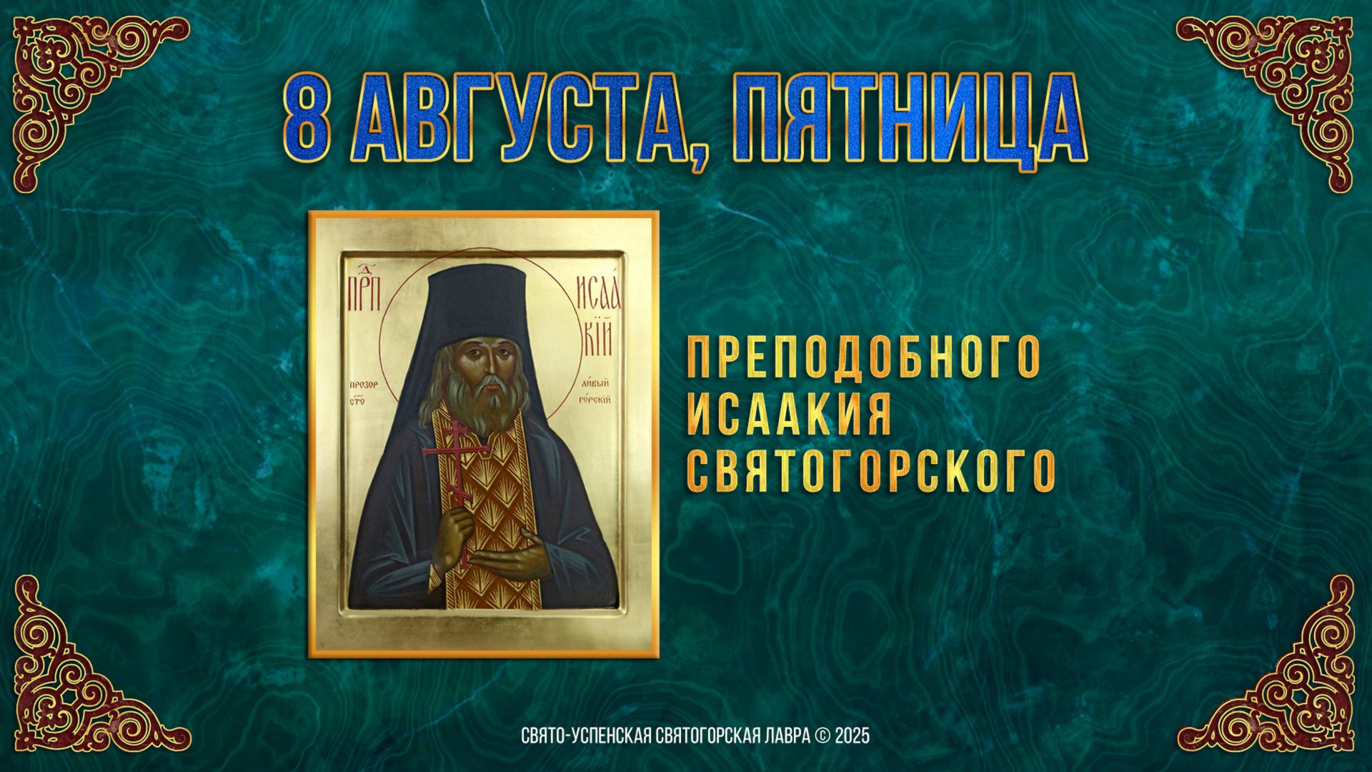 Преподобного Исаакия Святогорского. 8 августа 2025 г. Православный мультимедийный календарь