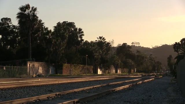 Проезжает пассажирский и грузовой поезд по железке в США Америка