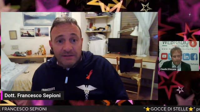 "⭐GOCCE DI STELLE⭐" sul Cammino della Vita tra Musica e Realtà, programma condotto da 👩LILIANA GIANNETTINO e 🧓CLAUDIO D'ANCONA con noi ospite FRANCESCO SEPIONI. 🎬 Regia di @maxfuoky 🗓 Giovedi 28 Marzo ore 21.00 🔴Live anche su www.webradioitaliane.it/goccedistelle 👉CANALE YOUTUBE: https://youtube.com/c/WEBRADIOITALIANE 👉PAGINA FACEBOOK: https://www.facebook.com/webradioitaliane/ 👉TWITCH: https://www.twitch.tv/WebRadioItaliane?sr=a 👉In Podcast su: www.webradioitaliane.it/goccedistelle GRUPPO DEDICATO FACEBOOK: https://www.facebook.com/groups/315711737243873/?ref=share_group_link #webradioitaliane #webradio #radio #interviste #serviziradio #aggregatoreradio #dj #speaker #editori #cantanti #artisti #gruppimusicali #community #cantautori #onair #italia #musica #webradiouniteperlamusica #goccedistelle Vuoi creare streaming in diretta come questo? Prova StreamYard: https://streamyard.com/pal/d/5626770250792960