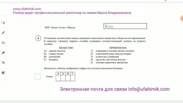 Задание 8 Разбор образца ВПР ХИМИЯ 8 класс 2026 • ОнлайнХимик • Репетитор по химии Корешкова Ирина
