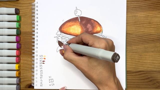 Как нарисовать бургер карандашом и скетч маркерами | Рисунок для детей, поэтапно и легко