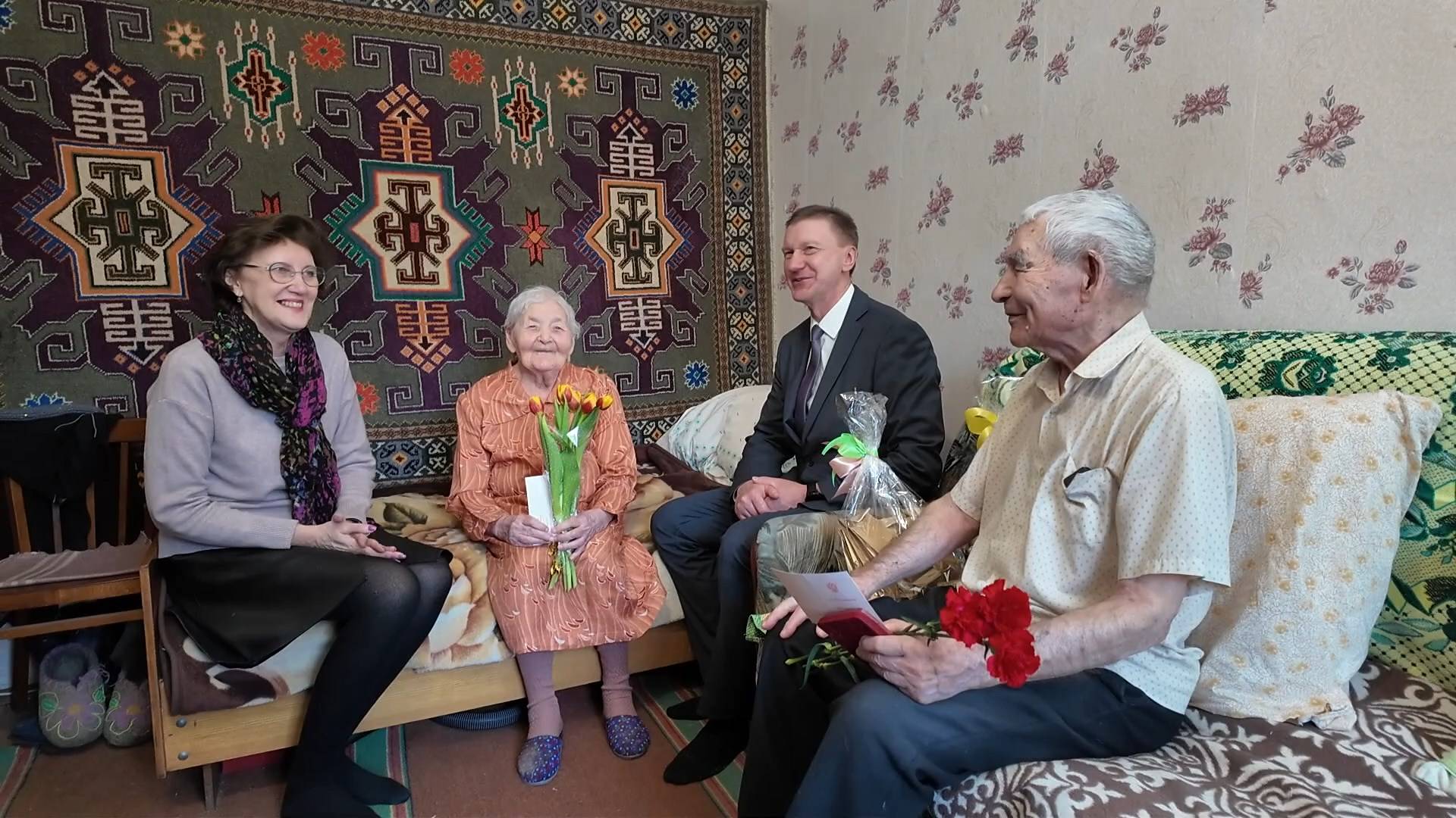 На этот раз представители городского Совета ветеранов пришли в гости к Владимиру Михайловичу Домрачеву и Дие Михайловне Кузнецовой. Брат и сестра – труженики тыла. Их детство и юность пришлись на военные годы. Когда взрослые ушли на фронт маленький Владимир работал извозчиком, а Дия – трактористкой.