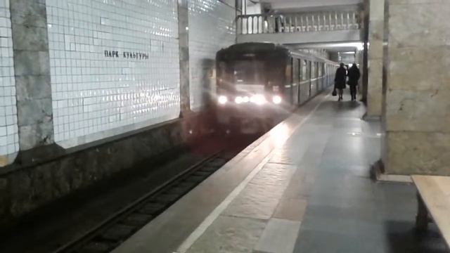 Составы из вагонов 81-717.5М/714.5М и 81-765.4/766.4/767.4 и поездка в вагоне 2504, станции Парк Культуры - Чистые Пруды, Сокольническая линия, Московский метрополитен, 20.10.2019