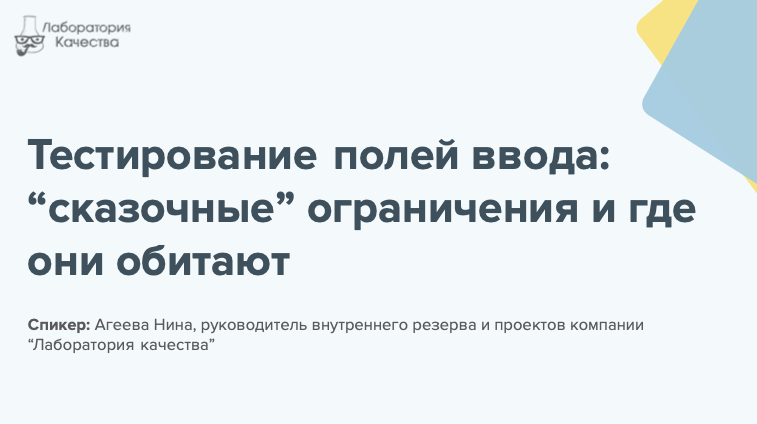 В этом видео Нина Агеева, руководитель внутреннего резерва и проектов компании "Лаборатория качества", рассказывает все о тестировании полей ввода, а также о "сказочных" ограничениях. Смотрите нас также на YouTube-канале: www.youtube.com/channel/UCUKj7hvw6phelqZPKKJnGBQ