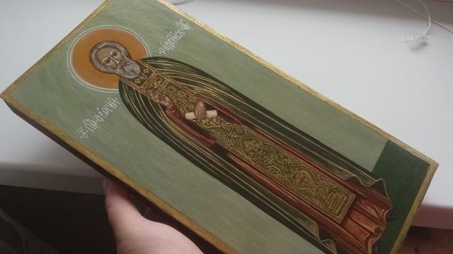 Переживала, что фон и позем будут глухими, но когда слои напитались олифой, то появилась живописность. Нижние слои просвечивают и цвет стал, как мне нравится. После двухразового олифления икону покрываю матовым копаловым лаком. #терраикон #иконопись #мастерклассыпоиконописи #сергийрадонежский #иконописец
