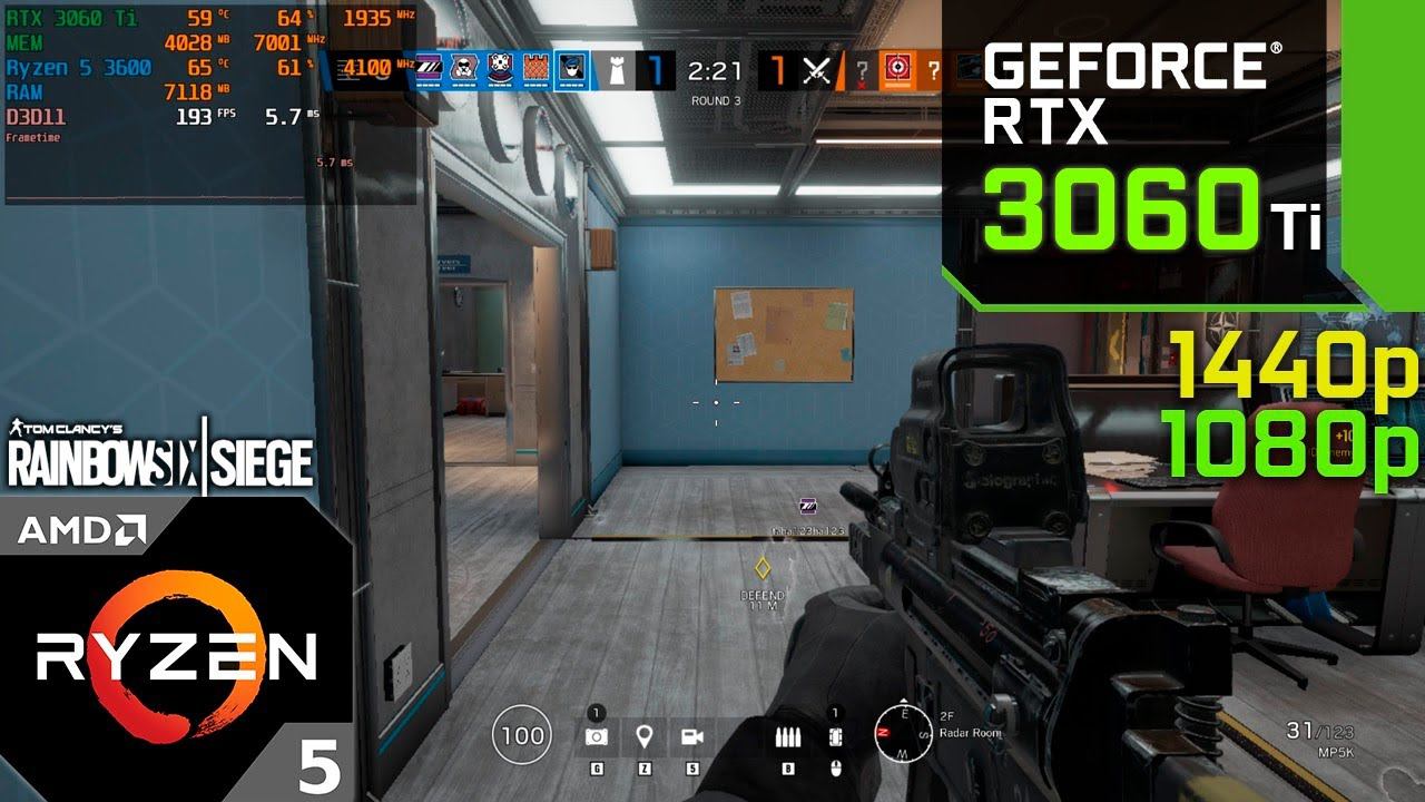 Tom Clancy's Rainbow Six Siege : RTX 3060 Ti 8GB (Ultra Graphics) 1440p, 1080p