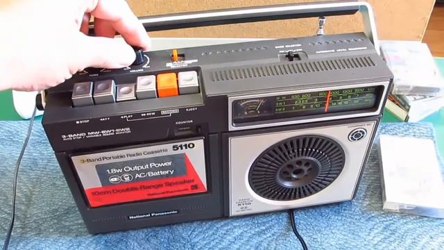Обзор кассетного магнитофона National Panasonic модель R-5110B Работает от сети 220в., и от 4-х батареек типа D или LR20.
