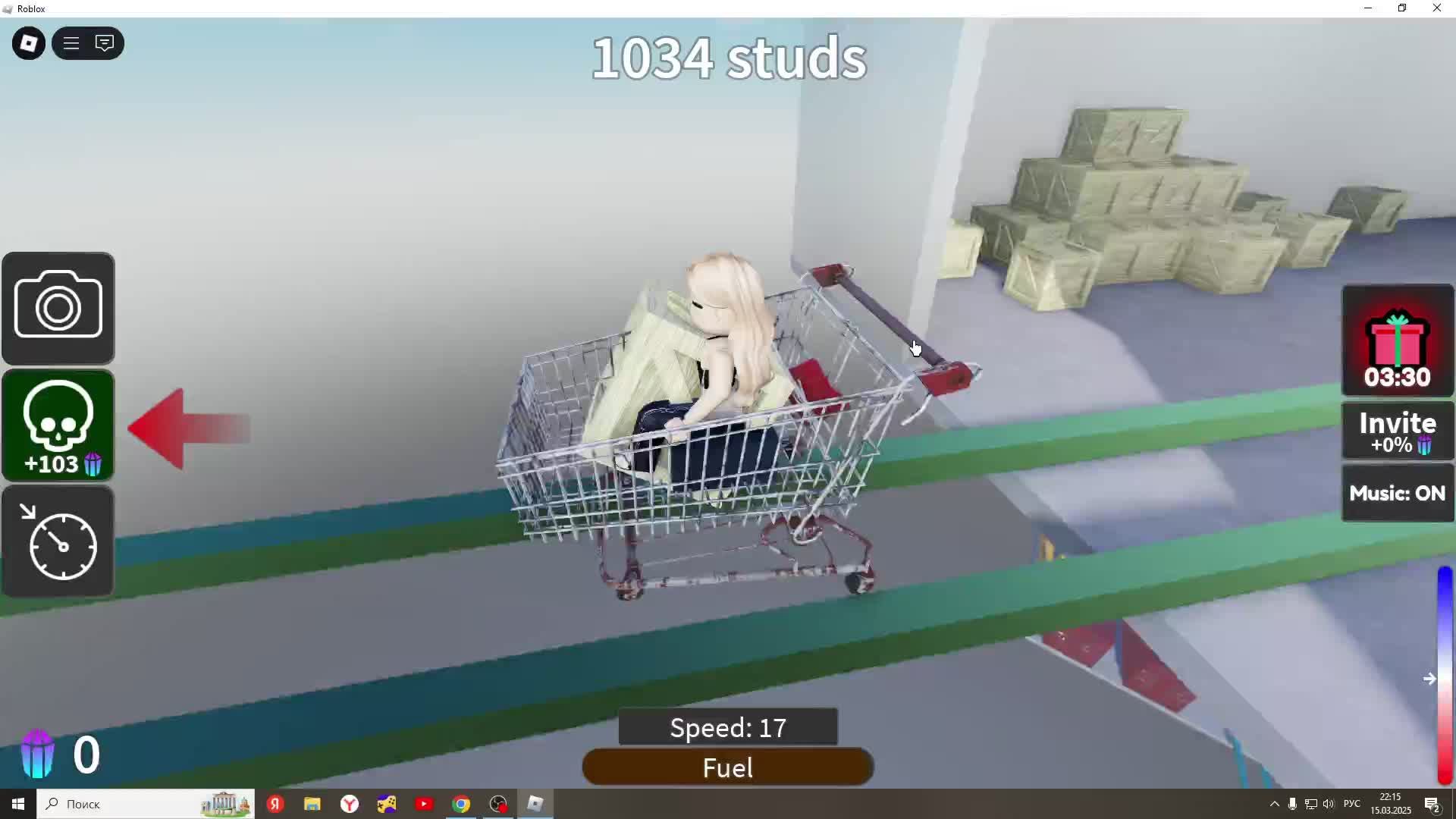 катаемся на тележке в роблоксе!