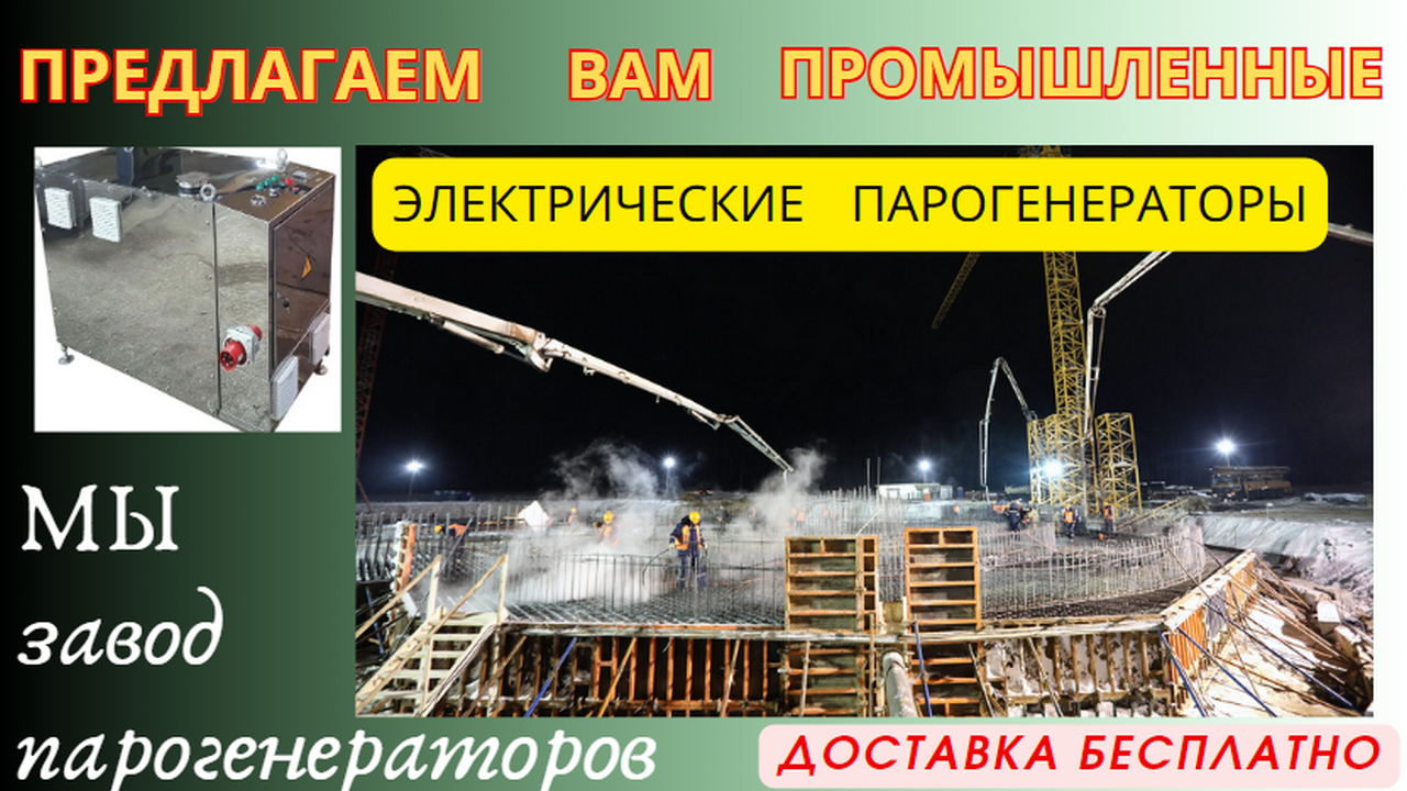 Парогенератор для строительных работ купить можно недорого, прямо у нас на заводе. Мы - завод парогенераторов! Выпускаем все типы парогенераторов. Предлагаем для зимнего периода парогенератор строительный дизельный. Наш парогенератор для строительных работ- просто незаменим для любого строительного объекта в зимний период. Дизельный мобильный парогенератор предназначен для прогрева арматуры перед бетонированием. Для удаления снега и наледи с бетона. А также, парогенератор строительный используется, для прогрева инертных материалов: песка и щебня для работы РБУ. Парогенератор для РБУ - можно использовать и для БСУ( бетоносмесительного узла). Наша установка производства пара, используется при ликвидации аварийных ситуаций на объекта водоснабжения, водоотведения, теплоснабжения. Парогенератор строительный используется: - для прогревания скважин, размораживание трубопроводов; - зазмораживание инертных материалов - песка и щебня; - подогрев технологической воды для производства бетона; - отопления помещений бетонного завода; - для пропарочных и сушильных камер. Исходя из ваших потребностей, вы можете выбрать: - мобильный парогенератор; - дизельные парогенераторы: на шасси или в контейнере; - на автоприцепе. Наш мобильный парогенератор промышленный незаменим при выполнения следующих видов работ. - Удаление снежной наледи с опалубки перекрытия, колонн. - Оттаивание снега перед заливкой плиты фундамента. - Подогрев растворов, воды для технологических нужд. - Мойка оборудования от сильных загрязнений, следов мазута и пр.. - Разморозка трубопроводов, кранов, вентилей. - Подогрева залитой бетонной массы в зимний период. Дизельный мобильный парогенератор применяют в - газодобычи, нефтедобычи и в других областях промышленности и народного хозяйства. Парогенератор для стройки купить у нас можно не дорого без "эффективных менеджеров" и прочено "офисного планктона" . Парогенератор для стройки зимой очень востребован для пропарки бетона, ЖБИ-изделий, оттаивания снега на площадке, прогрева песка, щебня и других инертных материалов. - Для разморозки и отогрева кранов, вентилей, труб во избежание аварийных ситуаций. - Для прочистки и продувки трубопроводов. - Для прогревания металлических конструкции. - Для прогревания сливных кранов цистерн. - Для обработки стен, машин, оборудования паром. - Для прогревания бетона и смесей, при заливке и стяжке полов при минусовой температуре, продувке фундаментов. - Для расчистки строительных объектов ото льда и снега, подготовки бетона для фундамента, его дальнейшей пропарки и ускорения затвердевания. - На бетонных заводах для пропарки бетонных изделий, прогревания щебня и песка, для оттаивания трубопроводов, арматуры. Парогенератор передвижной по низкой цене, от нашего завода. Низкие цены! Оборудование в наличии! Монтаж! Гарантия! Доставка! Сервис! Люди покупают у нас, потому что доверяют нам. Своя производственная база, позволила нам производить cтроительное оборудование собственных разработок. Всегда есть тот, кто делает лучше других! И никаких посредников, спекулянтов, "белых воротничков" и прочего офисного планктона... Исключительно напрямую от производителя. Причем, мы придерживаемся низкой ценовой политики. Поэтому, у нас оборудование всегда дешевле! #Парогенератор_для_строительных_работ_купит
