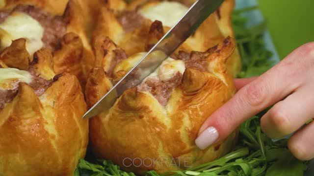 Забудьте все рецепты! Это самая вкусная закуска, которую я когда-либо ел! Ингредиенты: слоеное тесто: 400 г мясной фарш: 400 г помидоры: 2 шт лук: 2 шт черный перец: 2 г соль: 4 г сладкая паприка : 4 г яйца : 1 шт картофель : 400 г вода: 500 мл сыр : 150 г петрушка : 15 г соль: 5 г яйца : 1 шт моцарелла : 80 г