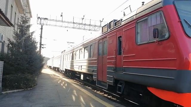 Электропоезд ЭД4М-0174 с пригородным поездом №6003 Челябинск-Главный — Златоуст отправляется с 1-го пути Ст. Миасс-3, г. Миасс, Челябинская обл., ЮУЖД Дата: 15.04.2023