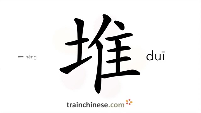 堆 (duī) heap, pile; stack; mass; to clamp