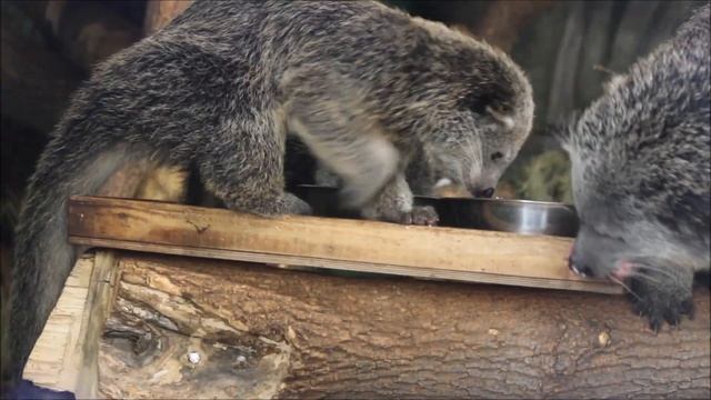 Малыши бинтуронгов обедают с мамой 07.07.2025