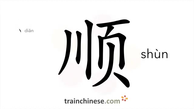 顺 (shùn) smooth; along; to obey