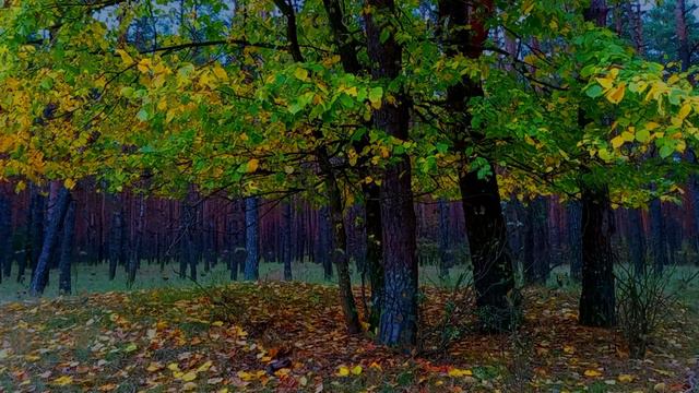 Лёгкий дождь в осеннем лесу в тихую погоду поможет отдохнуть, расслабиться или уснуть.