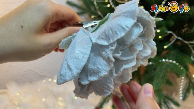 332090 Елочное украшение Мак в снежном инее с зажимом серебро 15см