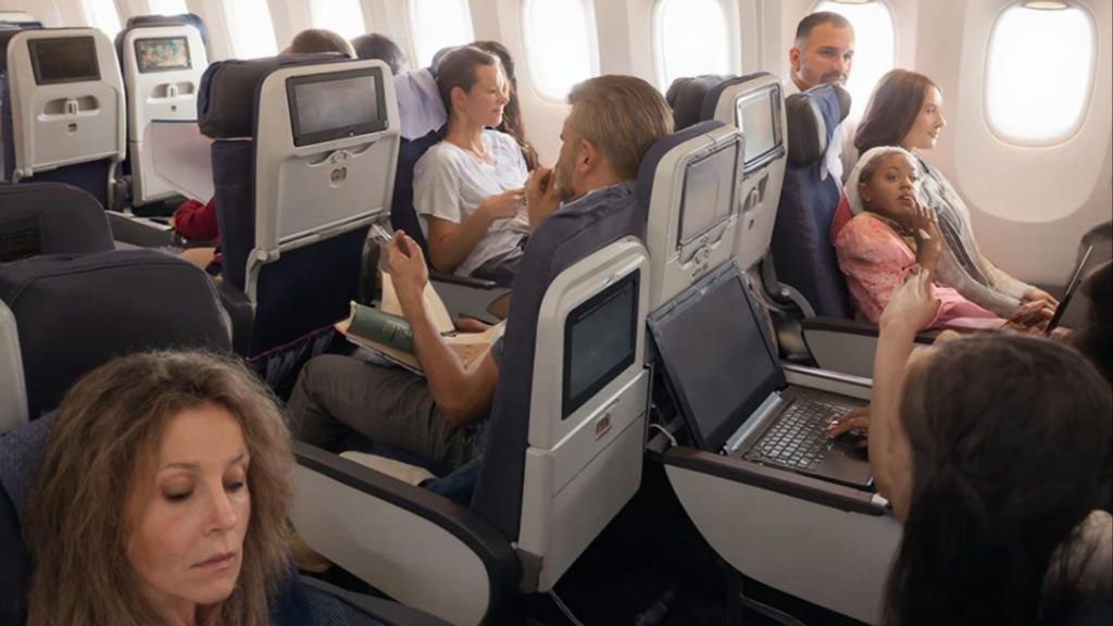 В самолёте, как бы случайно, мужчина коснулся своей коленкой ноги женщины и не убрал её...