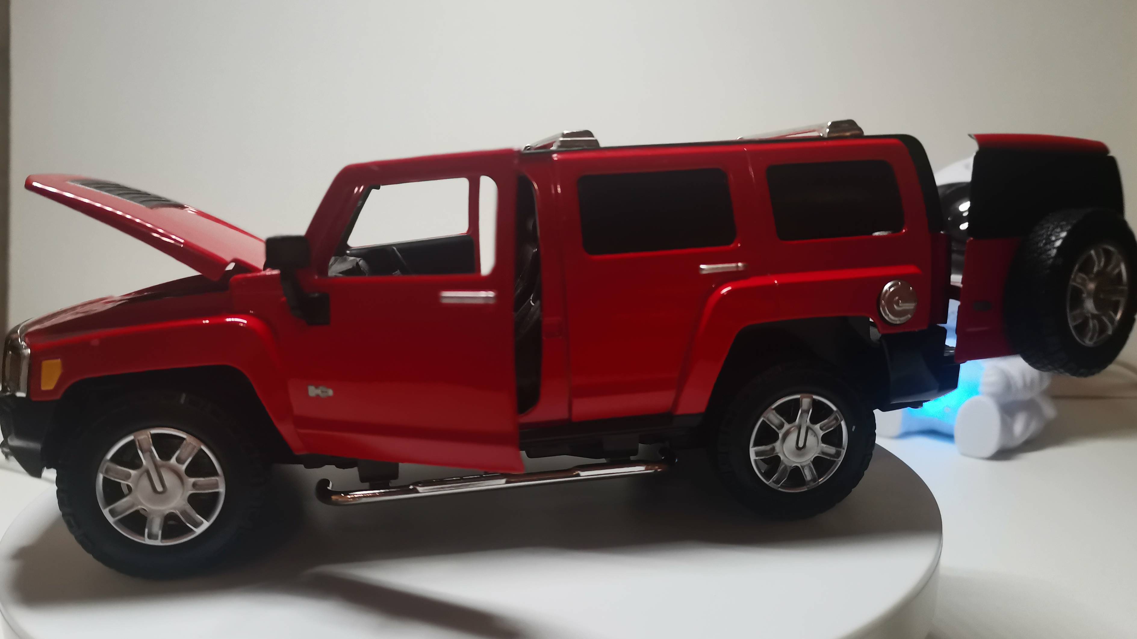 Реалистичная проработка модели машины и внимание к деталям внедорожника поразят воображение самых искушенных любителей. Открывающиеся двери и капот, а также свет и звук. Яркий красный цвет корпуса не оставит машину незамеченной.