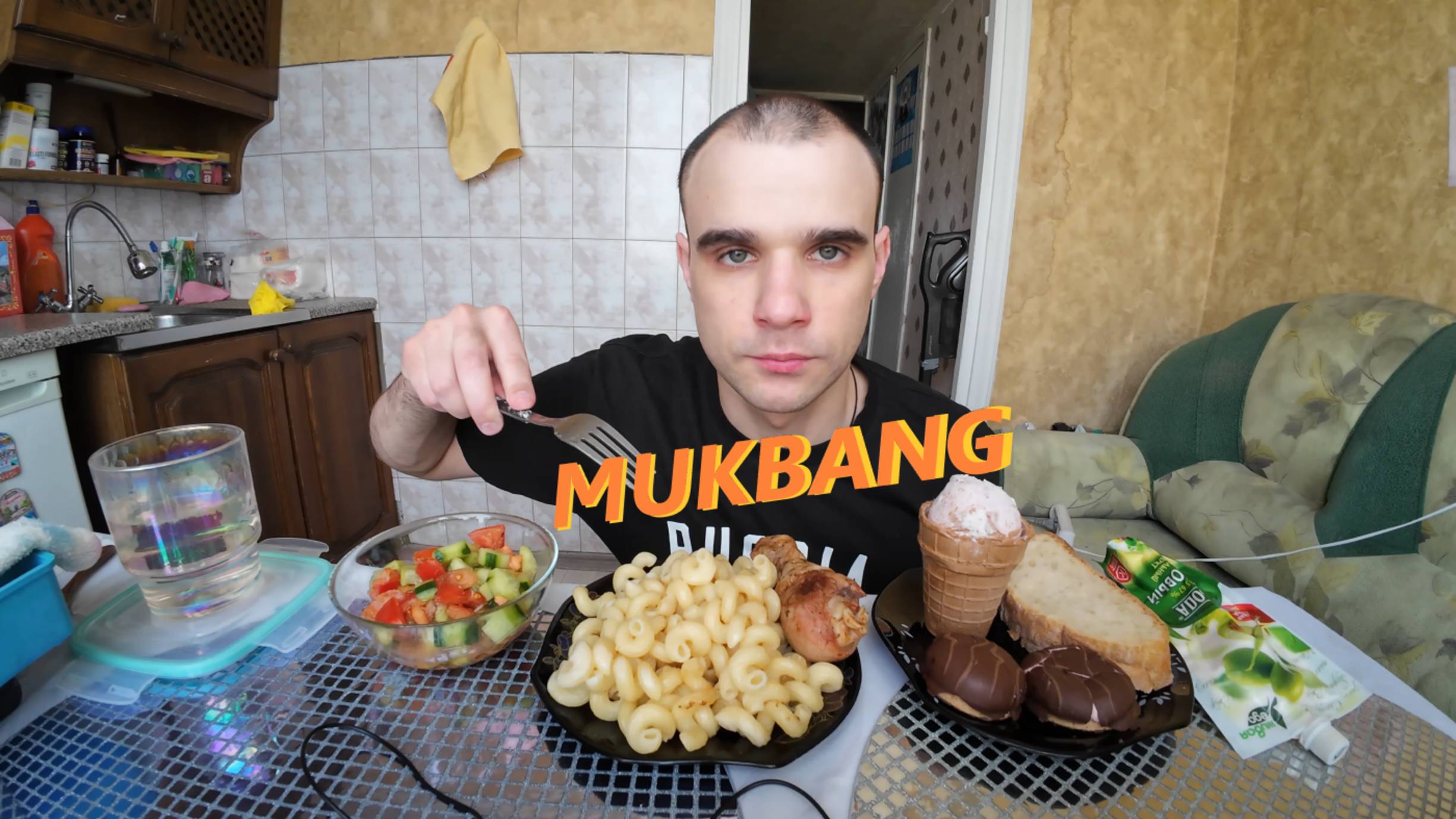 МУКБАНГ МАКАРОНЫ / КУРИЦА ЖАРЕНАЯ / САЛАТ / МОРОЖЕНОЕ И ПЕЧЕНЬЕ / EATING MUKBANG ASMR АСМР