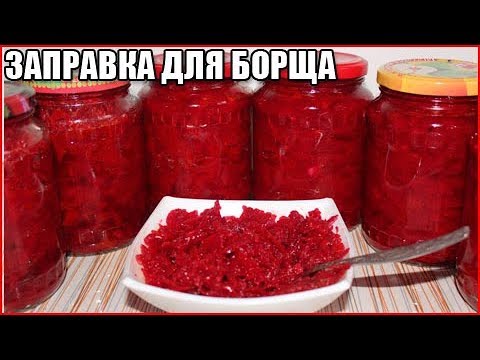 Как приготовить очень вкусную заправку для борща на зиму из свеклы, помидоров, болгарского перца, лука и моркови. Борщевая заправка получается очень вкусной, пальчики оближешь! Простой рецепт домашней заготовки для борща без капусты, уксуса и без стерилизации. Заготовки из болгарского перца, свеклы, помидоров в банках на зиму. Ингредиенты для борщевой заправки: 1 кг свеклы 1 кг лука 1 кг моркови 0,5 кг болгарского перца 1,5 помидоров 4 стол.л. томатной пасты 1 стакан растительного масла 1 головка чеснока 2 ст.л. соли 2 ст.л. сахарного песка