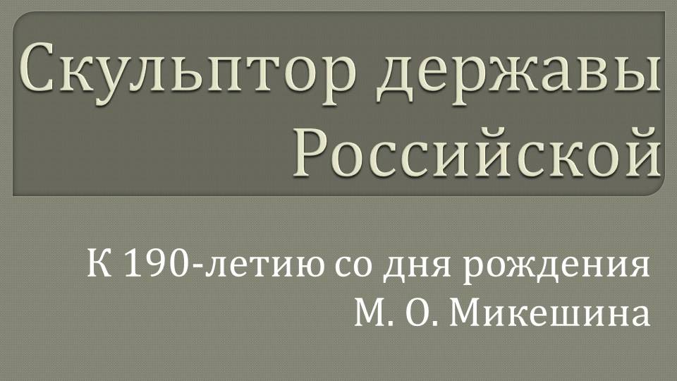 Скульптор державы Российской: ко дню рождения М. О. Микешина