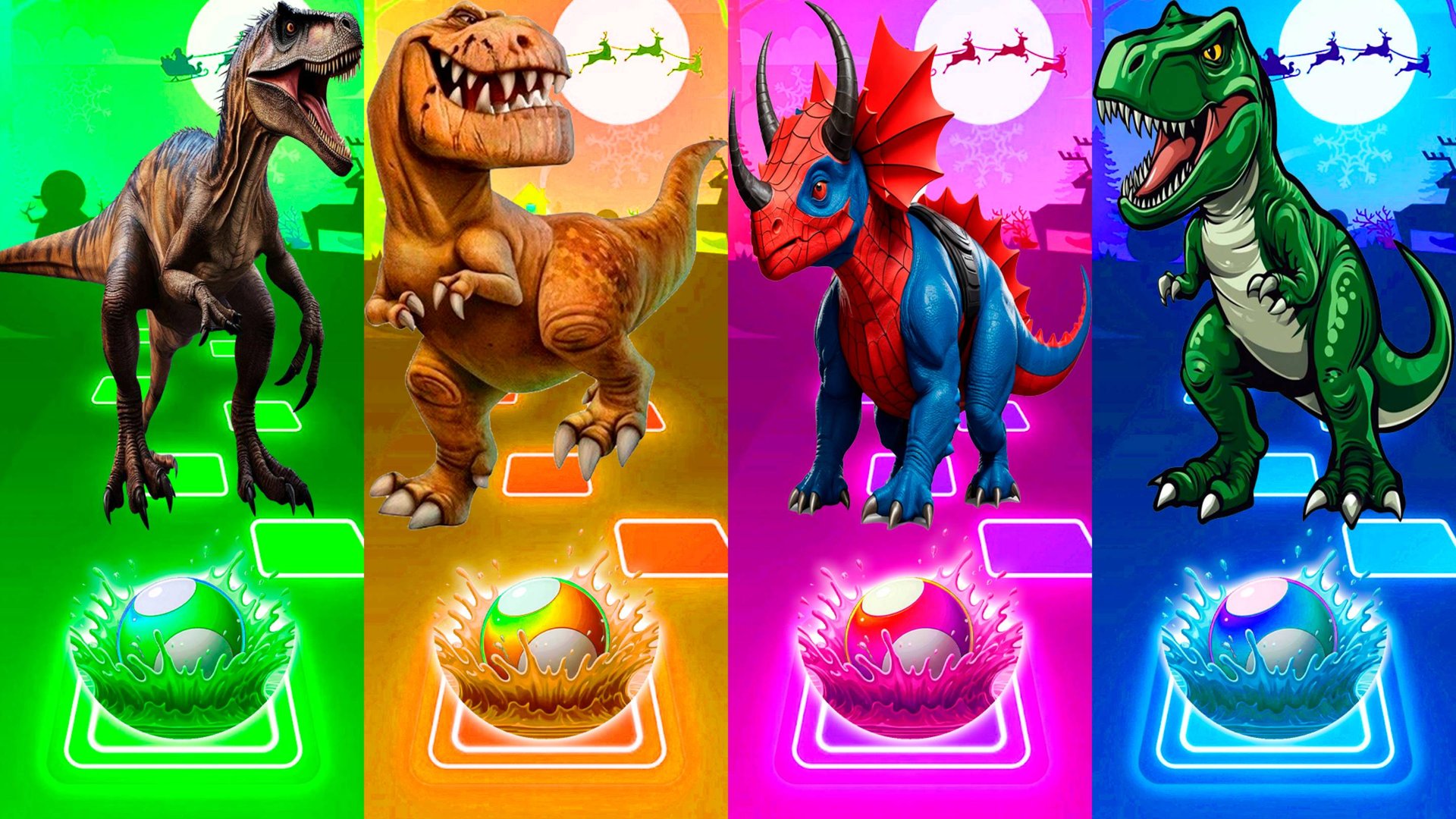 ЮРСКИЕ ДИНОЗАВРЫ vs КРУТЫХ ДИНОЗАВРОВ 155 уровень | МУЛЬТФИЛЬМЫ ДИНОЗАВРЫ в Tiles Hop