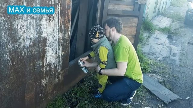 Максим красит из баллончика с папой