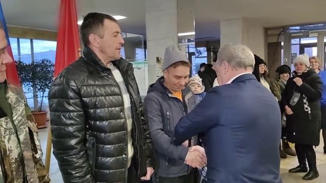Глава города Братска Сергей Серебренников: Четверо братчан выехали сегодня на сборный пункт в Шелехов, где они пройдут медкомиссию и подпишут контракт с Министерством обороны РФ на участие в специальной военной операции. В Харабовске они пройдут подготовку, а затем будут распределены в военные части. И снова люди разных возрастов, профессий, судеб... Самому старшему — Александру — 59 лет. Самому младшему — Павлу — 20. Но всех объединяет одно — любовь к Родине и стремление встать на её защиту. События последнего месяца отразились на настроении добровольцев. Чудовищные обстрелы Белгорода и Донецка, поражение ракетой самолёта Ил-76 — эти и другие террористические действия националистов красноречиво показывают их звериное лицо. Роману 40 лет. Монтажник на крупном предприятии. Срочную службу не проходил. Говорит, что долго обдумывал это решение. Последней каплей стал обстрел Белгорода. “Есть у меня там друзья, коллеги по работе. Они отправились в зону СВО по мобилизации. Про киевский режим могу сказать только одно: полный беспредел. Надо идти и выгнать врага. Пора кончать с беспределом киевского режима. Вернёмся с Победой! Только так!”, - сказал Роман. Проводить Романа пришли родители, маленький сын, который не мог сдержать слёз, когда отец садился в машину. Павел только в прошлом году демобилизовался после прохождения срочной службы на Дальнем Востоке. На руках у него дочка, которой полгода. «Принял решение заключить контракт, потому что Родину надо защищать», — говорит Павел. По сложившейся традиции провожали будущих бойцов под марш «Прощание славянки». Вручил вещмешки со всем необходимым на первое время, флаг Братска, пожелал скорой Победы и возвращения домой. В понедельник вернулся с передовой. Посмотрел, как быт налажен. Всё у них нормально, живы-здоровы. В первой линии не стоят. Чтобы знали родственники, неподготовленных необстрелянных на передовую никто не посылает. С момента подписания контракта семьи военнослужащих попадают под опеку органов социальной защиты и администрации Братска. Священнослужитель Русской православной церкви, иерей Иоанн Долматов провёл молебен «На начало всякого доброго дела», окропил будущих бойцов и их родственников святой водой. А после молебна отец Иоанн рассказал о многовековой традиции благословлять русских воинов перед сражениями. Так было и во времена первых русских князей, большинство которых были святыми, и перед Куликовской битвой, на которую русских воинов благословил великий русский святой Сергий Радонежский. И сейчас идёт такая же брань. Мы не просто воюем с физическим врагом, который пытается захватить нашу территорию. Мы воюем практически со всем западным миром, который пытается уничтожить нашу мораль, нашу веру, наш дух. Поэтому Церковь с нашим Президентом, с нашим войском.