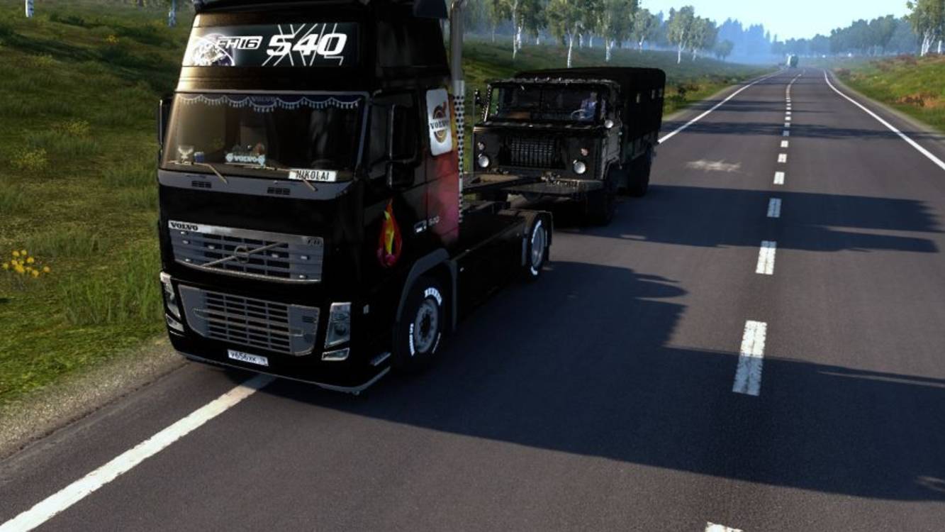 Всем привет. Тащу на жесткой сцепке Газ 66. Погнали.
