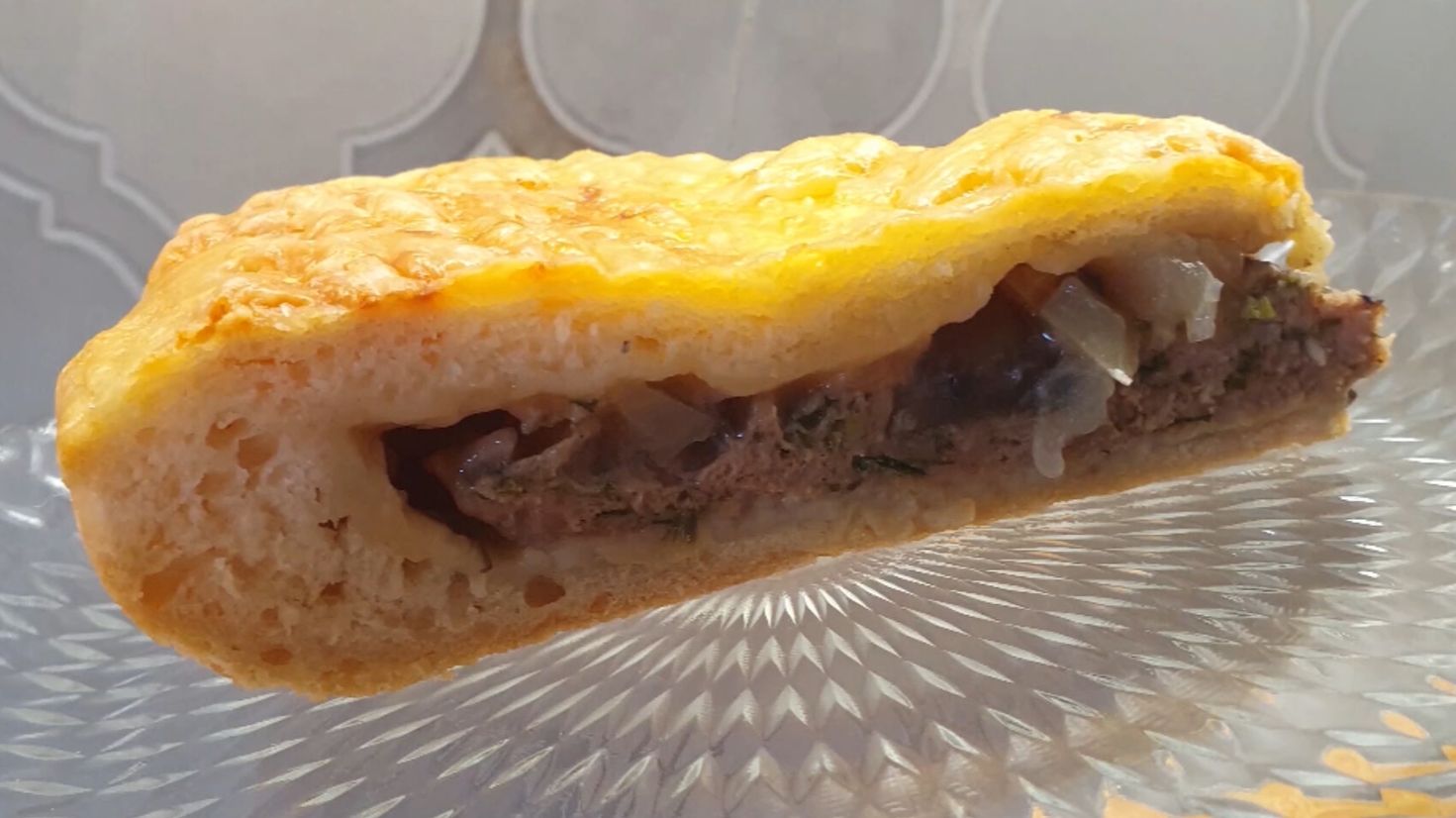 Пирог - фарш куриный, грибы, сыр.🤗🍅🥙🧄