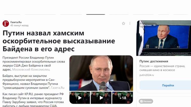 Путин назвал хамским оскорбительное высказывание Байдена в его адрес