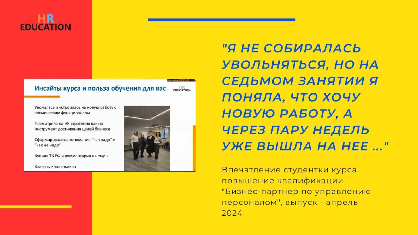Впечатления Марии Денисовой, студентки курса "HR бизнес-партнер"
