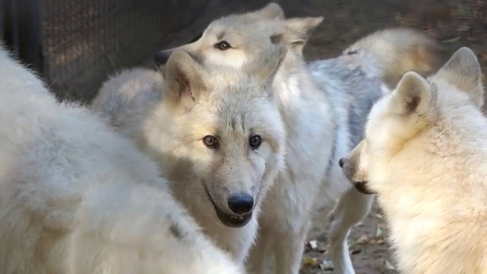 Громкая утренняя перекличка у белых полярных волков.