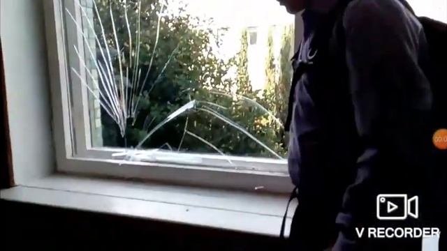Пацан разбил стекло в школе ?