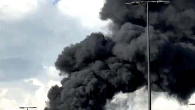 Сильный пожар на складе резины в Красногорске