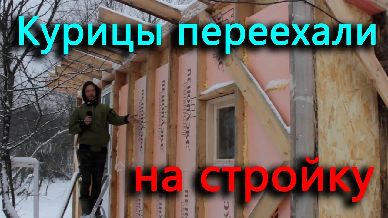 Курицы переехали в недостроенный птичник.