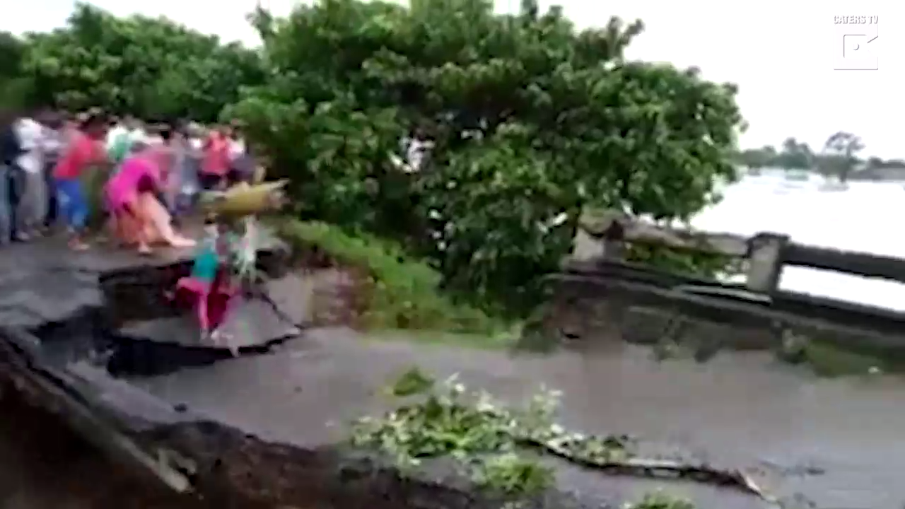 Индусы - очень рисковые ребята. Переходить мост в таких условиях.... #река #обвал #мост