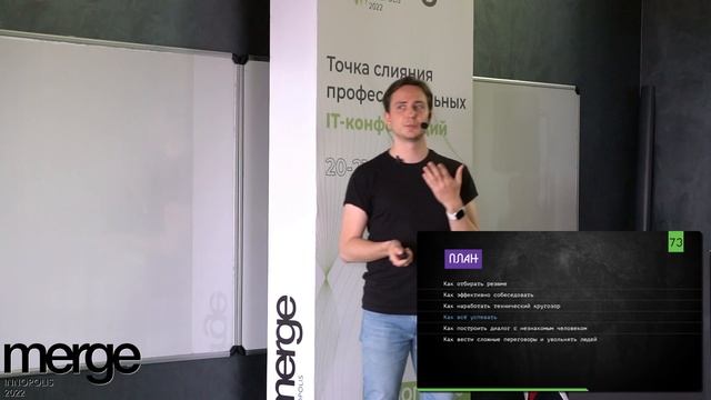 Что общего между тимлидом и журналистом-интервьюером? Кажется, что почти ничего, но я решил присмотреться. С 2017 года я вёл подкаст, в котором еженедельно брал интервью у очень разных людей и заметил множество сходств с типовыми процессами тимлидов, как one2one и собеседования. Как следствие, появилась гипотеза, что благодаря такому хобби вне работы вы можете, например, развить эмпатию и говорить с кем угодно о чем угодно. В докладе я хочу поделиться своим опытом подготовки и проведения интервью с вами, а также доступно объяснить, почему это может сильно помочь вам в профессиональном и личном развитии. О спикере Бессменный ведущий подкаста Frontend Weekend, участник ПК Frontend Conf и амбассадор софт скиллов. В прошлом актёр студенческого театра ВМК МГУ.