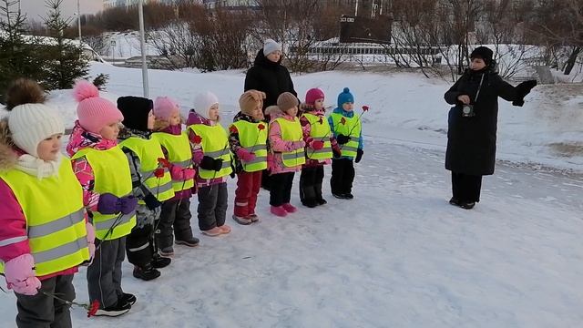 У воспитанников старшей группы "Морячки" с кадетским воспитанием прошла встреча с работником городского музея Инной Владимировной Волостных в виде экскурсии на площадь Победы города Полярный, которая посвящается всем нашим Защитникам Отечества.